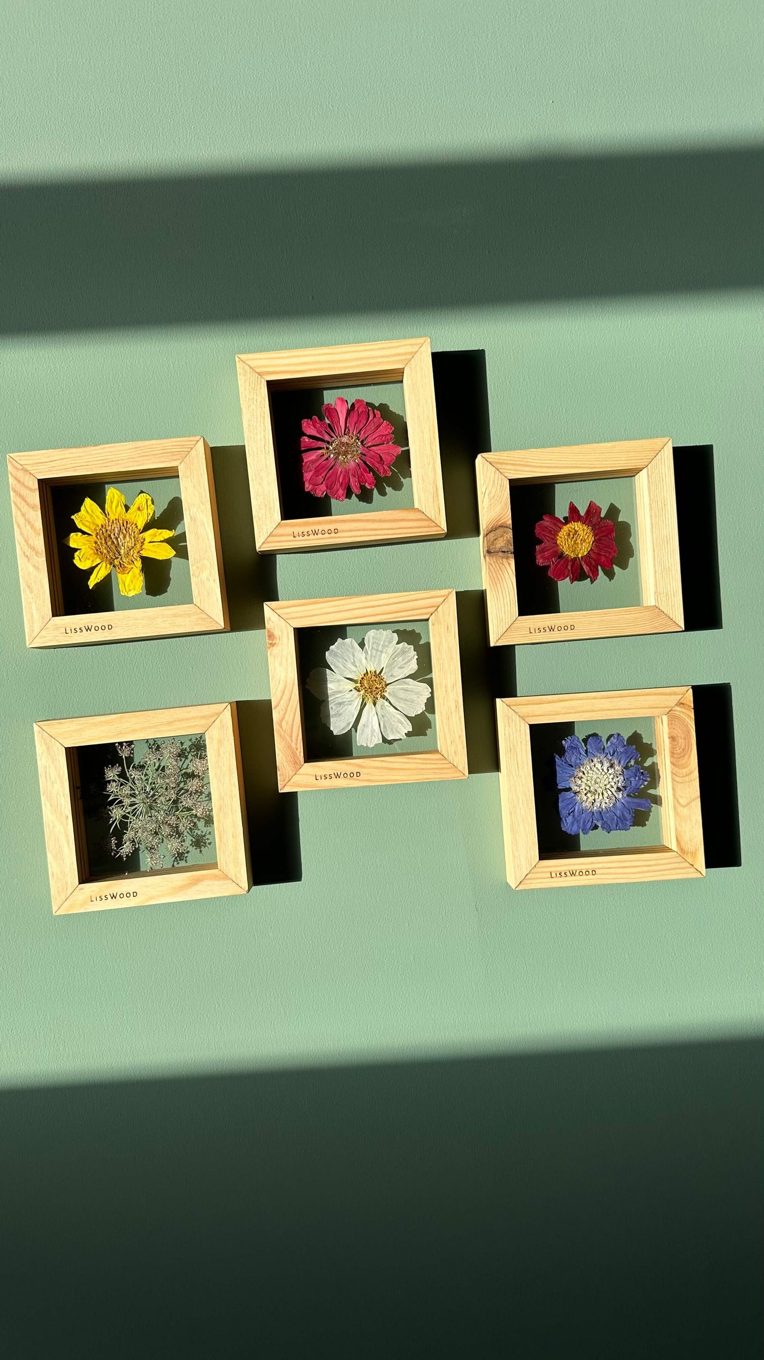 V naší dílně vytváříme květinové a lesní obrázky, které ukládáme do ručně vyráběných dřevěných rámů.