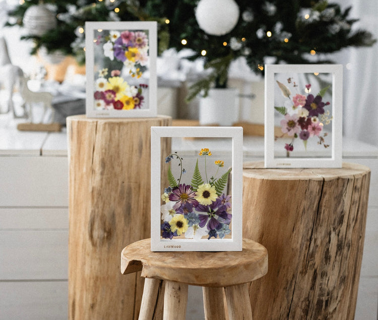 V naší dílně vytváříme květinové a lesní obrázky, které ukládáme do ručně vyráběných dřevěných rámů.