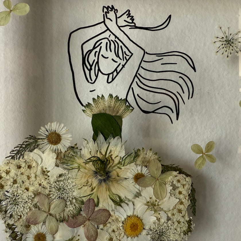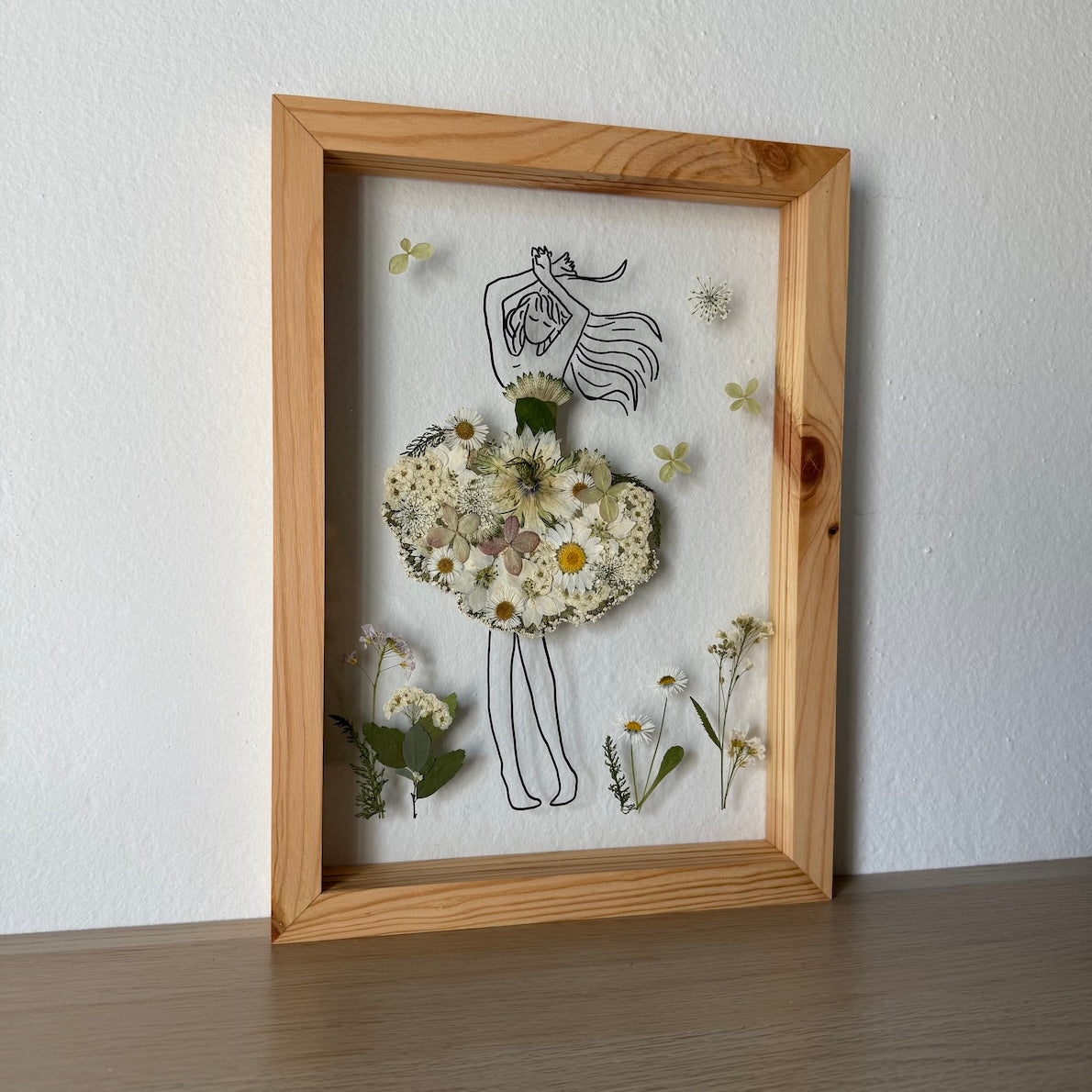 Květinový ručně vyrobený obraz s originální malovanou siluetou s květy v bílých barvách.