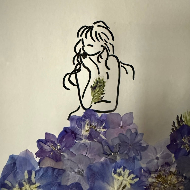 Květinový ručně vyrobený obraz s originální malovanou siluetou s květy v modrých barvách.