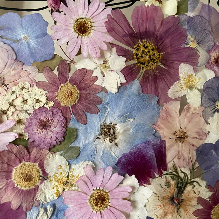 Použité květiny a rostliny jsou skutečné, ručně sbírané a šetrně lisované, aby si zachovaly svou přirozenou strukturu, jemnost i barevnost. 🌿 Následně jsou s citem aranžovány do jedinečné kompozice – každý obraz je originál, žádné dva kusy nejsou stejné.
