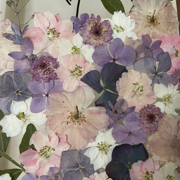 Použité květiny a rostliny jsou skutečné, ručně sbírané a šetrně lisované, aby si zachovaly svou přirozenou strukturu, jemnost i barevnost. 🌿 Následně jsou s citem aranžovány do jedinečné kompozice – každý obraz je originál, žádné dva kusy nejsou stejné.