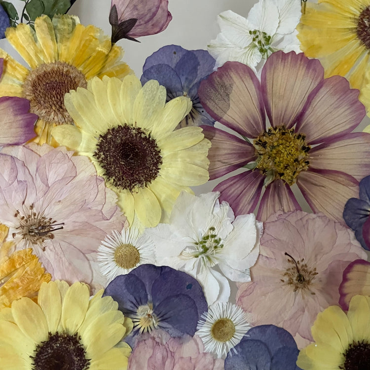 Použité květiny a rostliny jsou skutečné, ručně sbírané a šetrně lisované, aby si zachovaly svou přirozenou strukturu, jemnost i barevnost. 🌿 Následně jsou s citem aranžovány do jedinečné kompozice – každý obraz je originál, žádné dva kusy nejsou stejné.