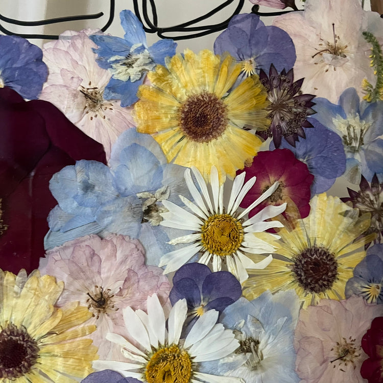 Použité květiny a rostliny jsou skutečné, ručně sbírané a šetrně lisované, aby si zachovaly svou přirozenou strukturu, jemnost i barevnost. 🌿 Následně jsou s citem aranžovány do jedinečné kompozice – každý obraz je originál, žádné dva kusy nejsou stejné.