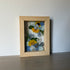 Květinový ručně vyrobený obraz s květy žlutých a modrých barev, které rostou z rohů obrazu. Mezi květy najdete hortenzie, krásnoočko a další.