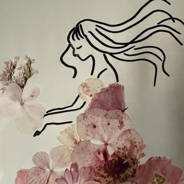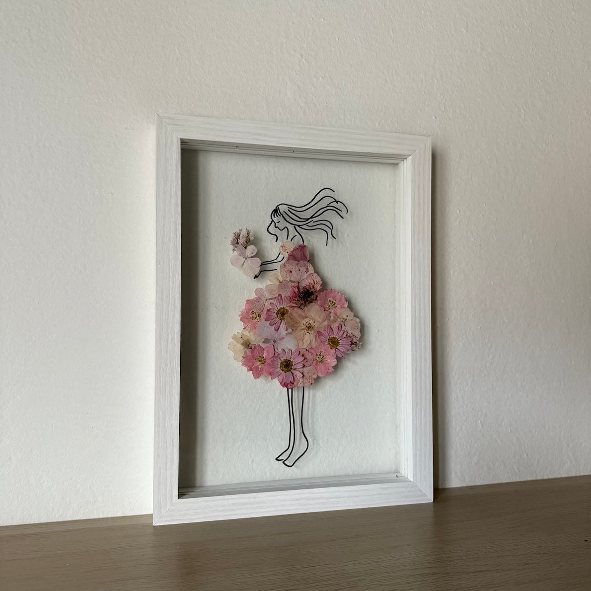Květinový ručně vyrobený obraz s originální malovanou siluetou s květy v růžových barvách.