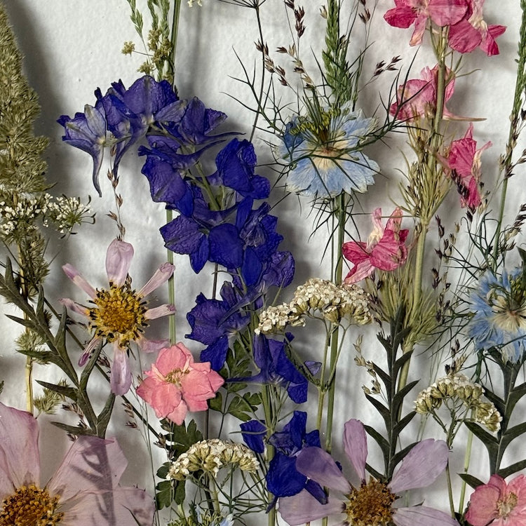 Použité květiny a rostliny jsou skutečné, ručně sbírané a šetrně lisované, aby si zachovaly svou přirozenou strukturu, jemnost i barevnost. 🌿 Následně jsou s citem aranžovány do jedinečné kompozice – každý obraz je originál, žádné dva kusy nejsou stejné.