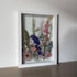 Květinový ručně vyrobený obraz s květy v růžových a modrých barvách, které rostou ze spodu obrazu jako louka. Mezi květy najdete krásenky, ostrožky, černuchy a mnoho dalšího.