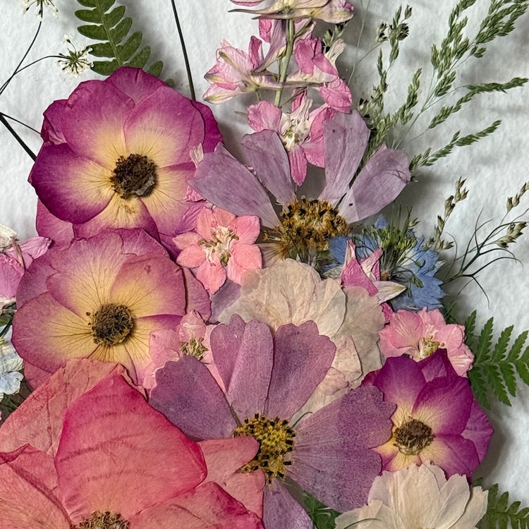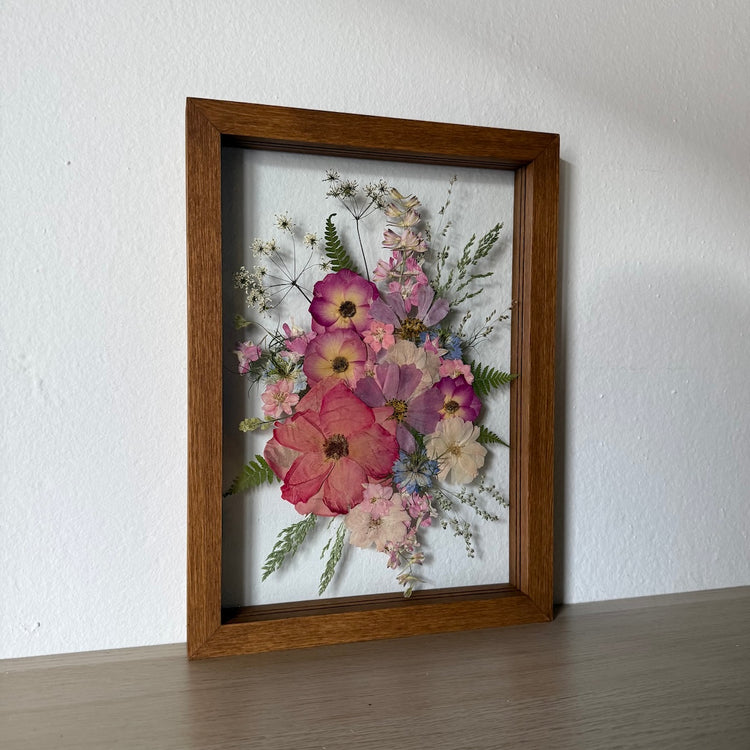Použité květiny a rostliny jsou skutečné, ručně sbírané a šetrně lisované, aby si zachovaly svou přirozenou strukturu, jemnost i barevnost. 🌿 Následně jsou s citem aranžovány do jedinečné kompozice – každý obraz je originál, žádné dva kusy nejsou stejné.