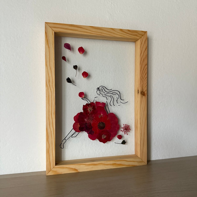 Květinový ručně vyrobený obraz s originální malovanou siluetou s květy v červených barvách.