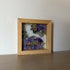 Květinový ručně vyrobený obraz s květy modrých a fialových barviček, které rostou z rohů obrazu. Mezi květy najdete hortenzie, ostrožky a mnoho dalšího.