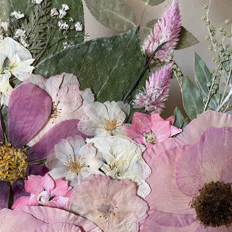 Použité květiny a rostliny jsou skutečné, ručně sbírané a šetrně lisované, aby si zachovaly svou přirozenou strukturu, jemnost i barevnost. 🌿 Následně jsou s citem aranžovány do jedinečné kompozice – každý obraz je originál, žádné dva kusy nejsou stejné.