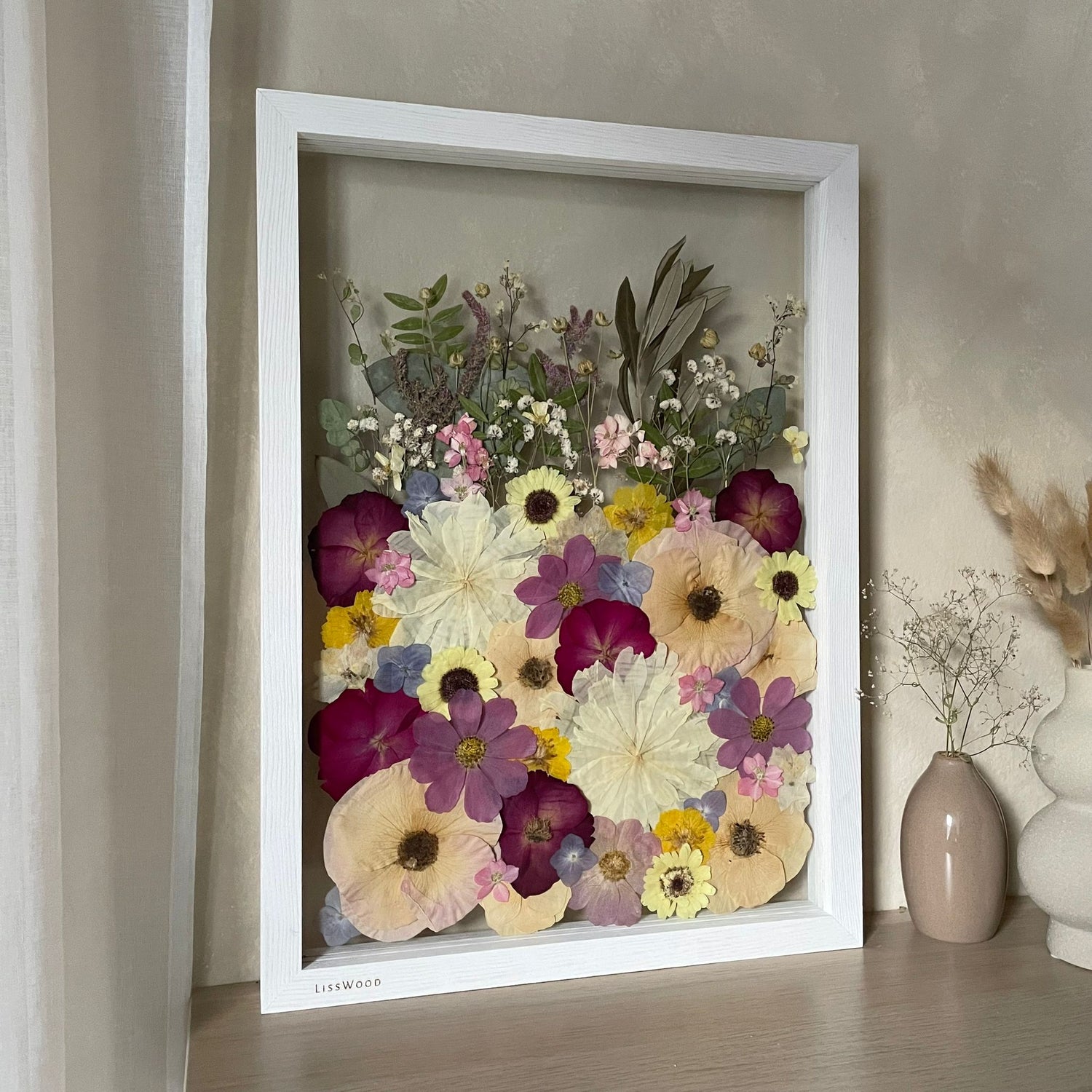 Každý květinový obraz LissWood vzniká ručně, s maximálním důrazem na detail, přírodu a poctivé řemeslo.