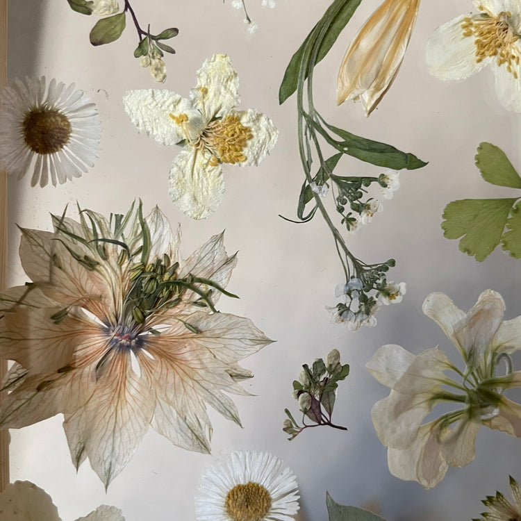 Použité květiny a rostliny jsou skutečné, ručně sbírané a šetrně lisované, aby si zachovaly svou přirozenou strukturu, jemnost i barevnost. 🌿 Následně jsou s citem aranžovány do jedinečné kompozice – každý obraz je originál, žádné dva kusy nejsou stejné.