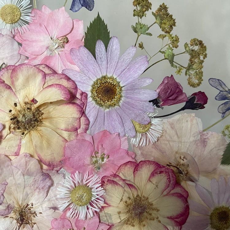 Použité květiny a rostliny jsou skutečné, ručně sbírané a šetrně lisované, aby si zachovaly svou přirozenou strukturu, jemnost i barevnost. 🌿 Následně jsou s citem aranžovány do jedinečné kompozice – každý obraz je originál, žádné dva kusy nejsou stejné.