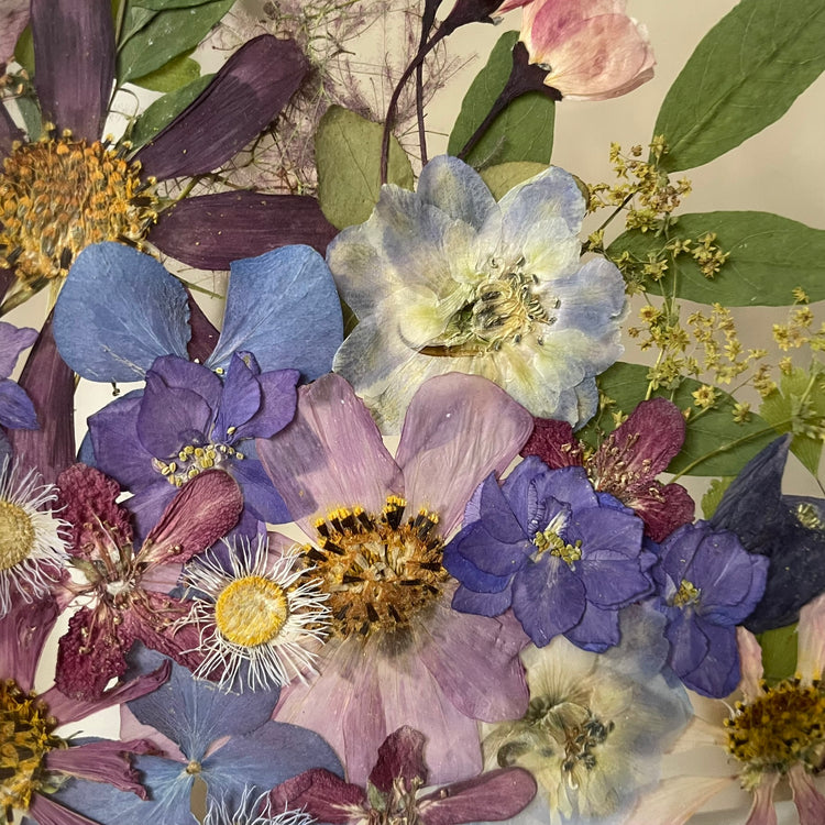 Použité květiny a rostliny jsou skutečné, ručně sbírané a šetrně lisované, aby si zachovaly svou přirozenou strukturu, jemnost i barevnost. 🌿 Následně jsou s citem aranžovány do jedinečné kompozice – každý obraz je originál, žádné dva kusy nejsou stejné.