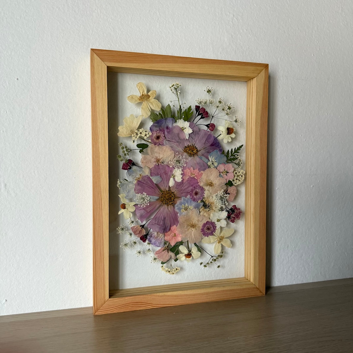 Použité květiny a rostliny jsou skutečné, ručně sbírané a šetrně lisované, aby si zachovaly svou přirozenou strukturu, jemnost i barevnost. 🌿 Následně jsou s citem aranžovány do jedinečné kompozice – každý obraz je originál, žádné dva kusy nejsou stejné.