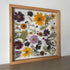 Květinový ručně vyrobený obraz s květy v oranžových a fialových barvách, které rostou po celém obrazu. Mezi květy najdete krásenky, měsíčky, cínie a mnoho dalšího.