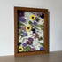 Květinový ručně vyrobený obraz s květy ve žlutých, fialových a bílých barvách, které rostou po celém obrazu. Mezi květy najdete ostrožky, čemeřice, macešky a mnoho dalšího.