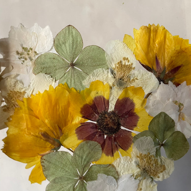 Použité květiny a rostliny jsou skutečné, ručně sbírané a šetrně lisované, aby si zachovaly svou přirozenou strukturu, jemnost i barevnost. 🌿 Následně jsou s citem aranžovány do jedinečné kompozice – každý obraz je originál, žádné dva kusy nejsou stejné.