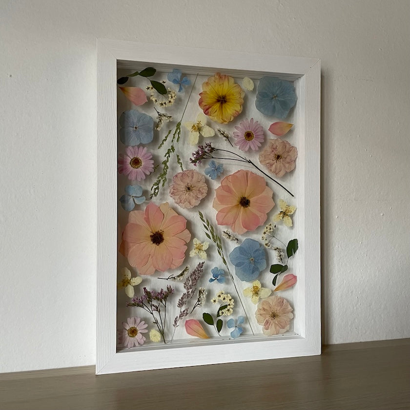 Použité květiny a rostliny jsou skutečné, ručně sbírané a šetrně lisované, aby si zachovaly svou přirozenou strukturu, jemnost i barevnost. 🌿 Následně jsou s citem aranžovány do jedinečné kompozice – každý obraz je originál, žádné dva kusy nejsou stejné.