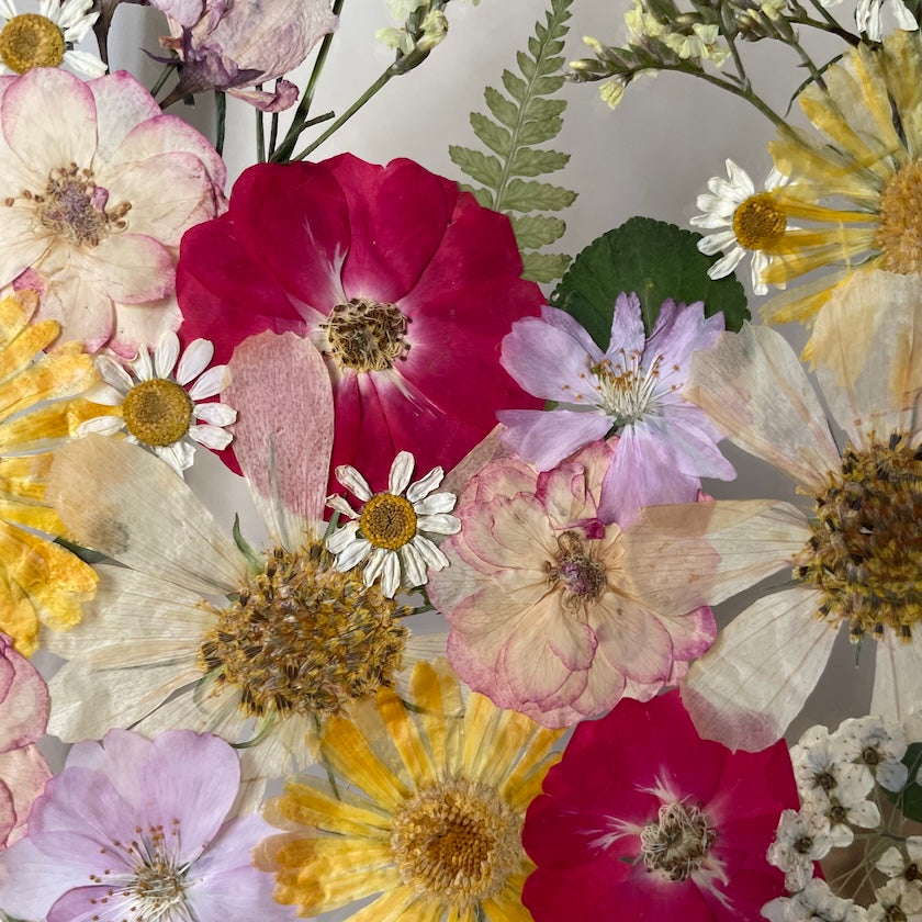 Použité květiny a rostliny jsou skutečné, ručně sbírané a šetrně lisované, aby si zachovaly svou přirozenou strukturu, jemnost i barevnost. 🌿 Následně jsou s citem aranžovány do jedinečné kompozice – každý obraz je originál, žádné dva kusy nejsou stejné.