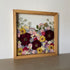 Květinový ručně vyrobený obraz s květy v růžových, žlutých a fialových barvách, které rostou ze spodu obrazu. Mezi květy najdete měsíčky, růže, ostrožky a mnoho dalšího.