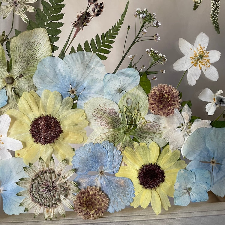 Použité květiny a rostliny jsou skutečné, ručně sbírané a šetrně lisované, aby si zachovaly svou přirozenou strukturu, jemnost i barevnost. 🌿 Následně jsou s citem aranžovány do jedinečné kompozice – každý obraz je originál, žádné dva kusy nejsou stejné.