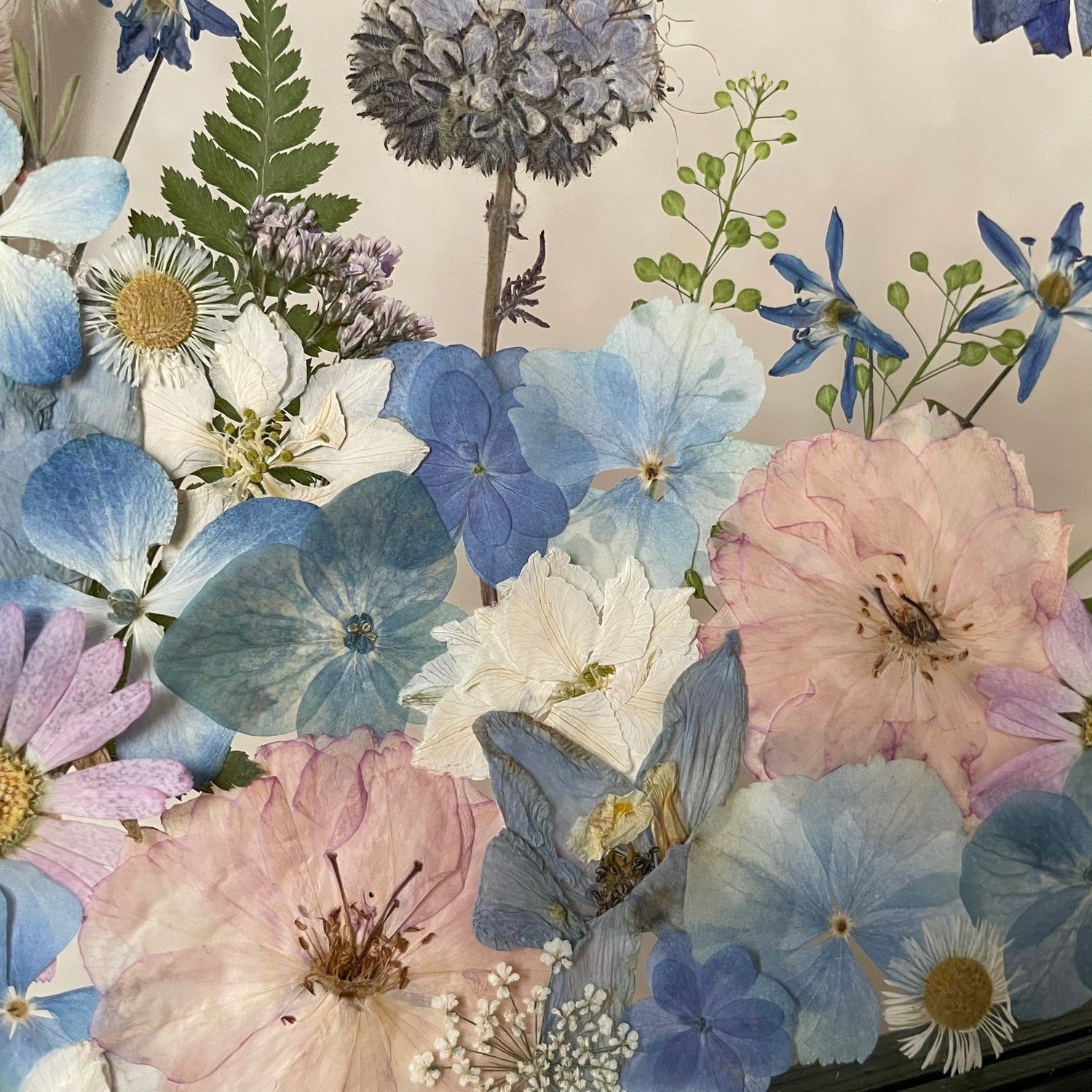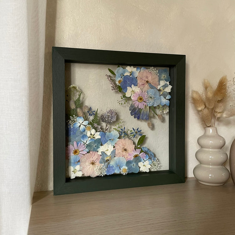 Použité květiny a rostliny jsou skutečné, ručně sbírané a šetrně lisované, aby si zachovaly svou přirozenou strukturu, jemnost i barevnost. 🌿 Následně jsou s citem aranžovány do jedinečné kompozice – každý obraz je originál, žádné dva kusy nejsou stejné.