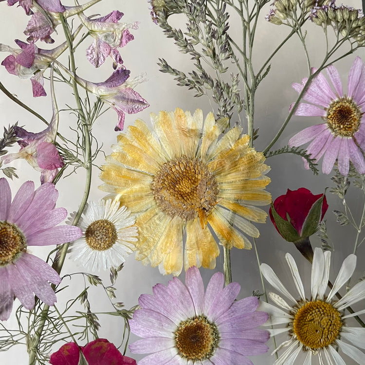 Použité květiny a rostliny jsou skutečné, ručně sbírané a šetrně lisované, aby si zachovaly svou přirozenou strukturu, jemnost i barevnost. 🌿 Následně jsou s citem aranžovány do jedinečné kompozice – každý obraz je originál, žádné dva kusy nejsou stejné.