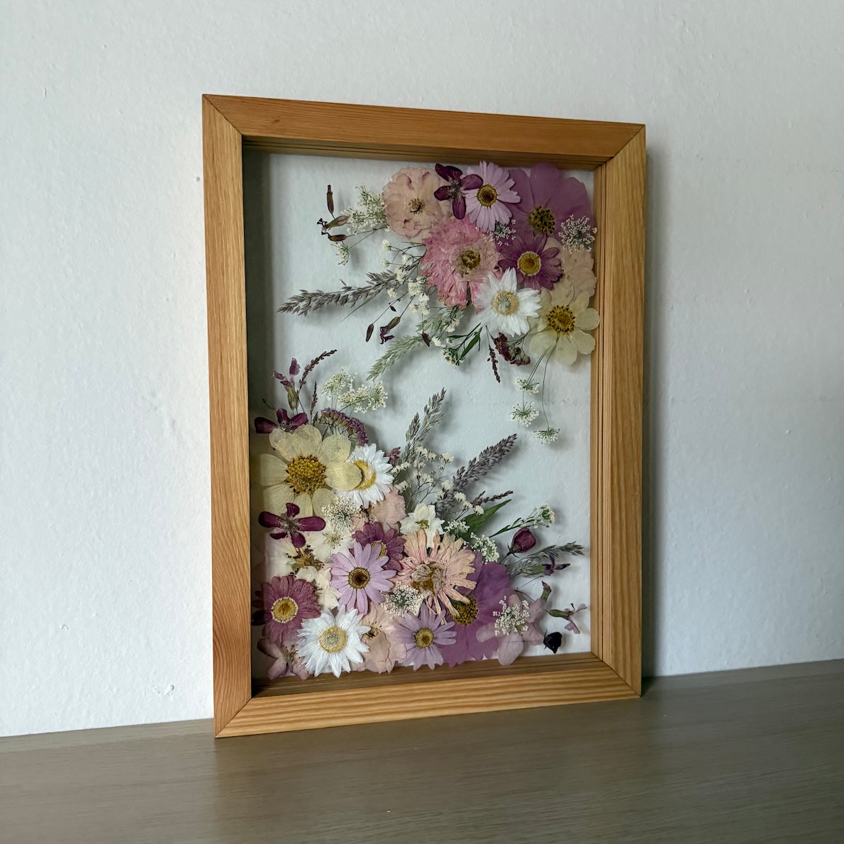 Přesně to jsou naše obrazy. Zakládáme si na originalitě a kvalitě, proto je každý náš obraz originál z pravých vylisovaných lokálních květů zarámovaných do ručně dělaných masivních dřevěných rámů.
