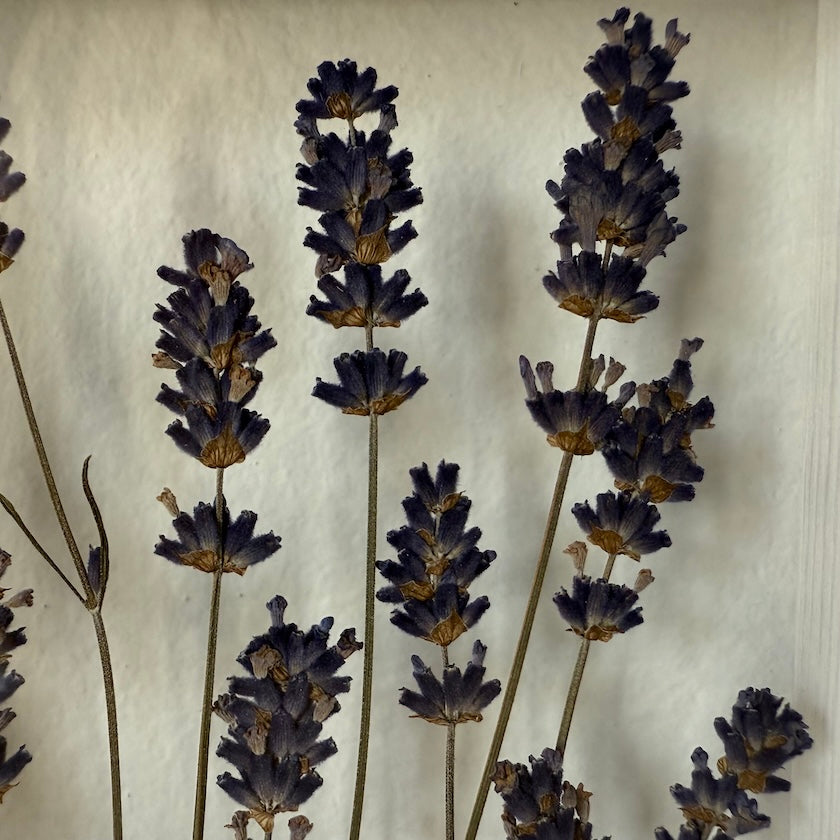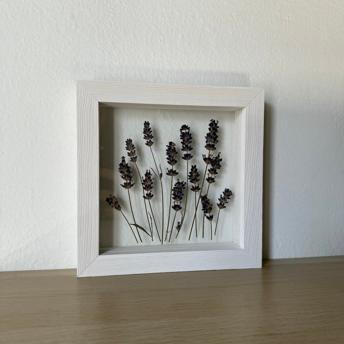 Květinový ručně vyrobený obraz s květy levandule, které rostou ze středu obrazu.