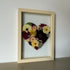 Květiny jsou zasazeny mezi skla a doplněny ručně vyráběným dřevěným rámem, který vzniká přímo v naší dílně. 🪵