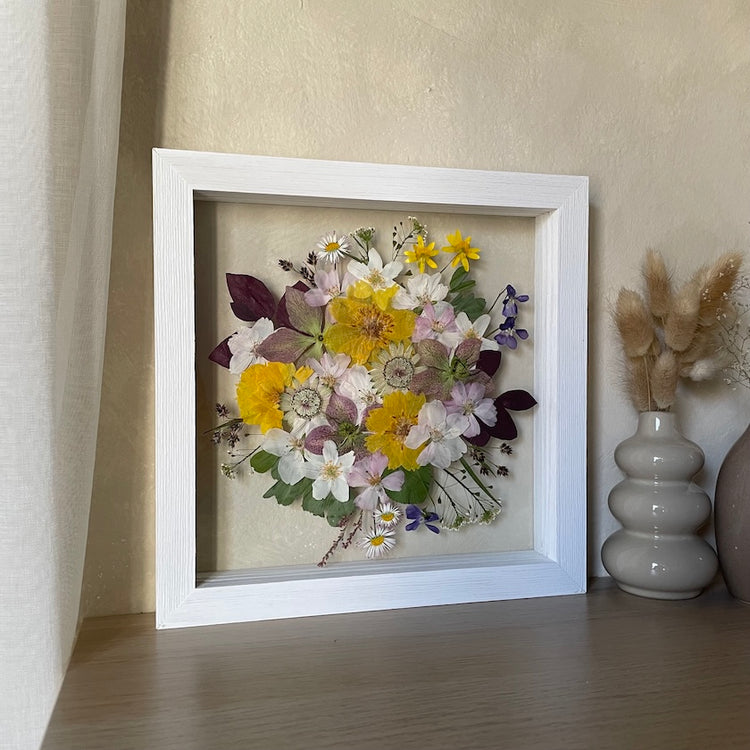 Použité květiny a rostliny jsou skutečné, ručně sbírané a šetrně lisované, aby si zachovaly svou přirozenou strukturu, jemnost i barevnost. 🌿 Následně jsou s citem aranžovány do jedinečné kompozice – každý obraz je originál, žádné dva kusy nejsou stejné.