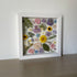 Květinový ručně vyrobený obraz s květy ve žlutých, růžových a fialových barvách, které rostou po celém obrazu. Mezi květy najdete krásnoočka, macešky, ostrožky a mnoho dalšího.