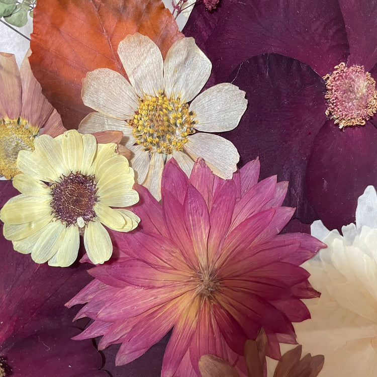 Použité květiny a rostliny jsou skutečné, ručně sbírané a šetrně lisované, aby si zachovaly svou přirozenou strukturu, jemnost i barevnost. 🌿 Následně jsou s citem aranžovány do jedinečné kompozice – každý obraz je originál, žádné dva kusy nejsou stejné.