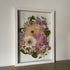 Květinový ručně vyrobený obraz s květy v růžových a bílých odstínech, které rostou ze středu obrazu. Mezi květy najdete květy růže, pivoňku, ostrožky a mnoho dalšího.