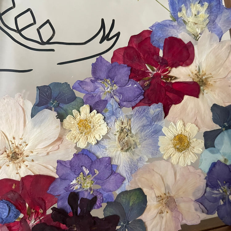 Použité květiny a rostliny jsou skutečné, ručně sbírané a šetrně lisované, aby si zachovaly svou přirozenou strukturu, jemnost i barevnost. 🌿 Následně jsou s citem aranžovány do jedinečné kompozice – každý obraz je originál, žádné dva kusy nejsou stejné.