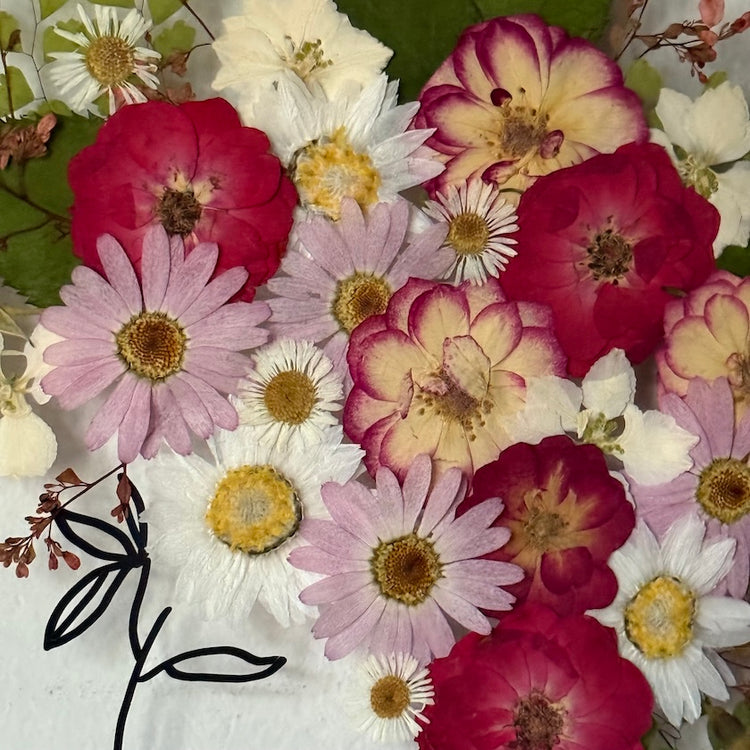 Přesně to jsou naše obrazy. Zakládáme si na originalitě a kvalitě, proto je každý náš obraz originál z pravých vylisovaných lokálních květů zarámovaných do ručně dělaných masivních dřevěných rámů.