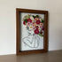 Květinový ručně vyrobený obraz s originální malovanou siluetou v bílých a červených barvách.