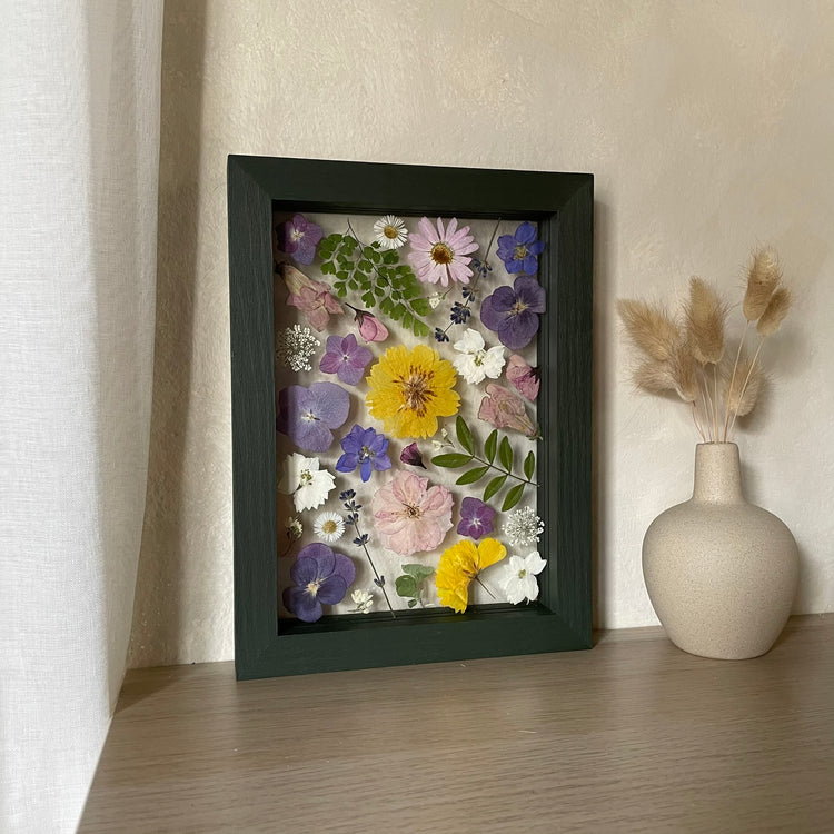 Použité květiny a rostliny jsou skutečné, ručně sbírané a šetrně lisované, aby si zachovaly svou přirozenou strukturu, jemnost i barevnost. 🌿 Následně jsou s citem aranžovány do jedinečné kompozice – každý obraz je originál, žádné dva kusy nejsou stejné.