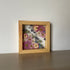 Květinový ručně vyrobený obraz s květy růžových, modrých a fialových barviček, které rostou z rohů obrazu. Mezi květy najdete krásenky, hortenzie a mnoho dalšího.
