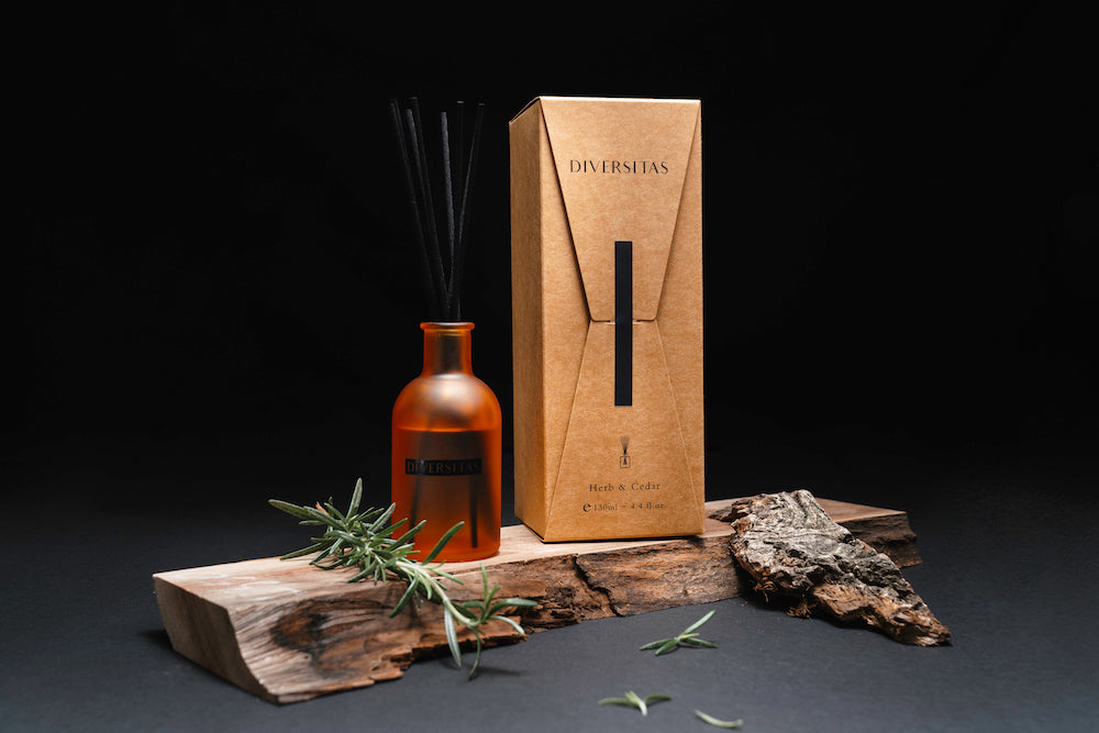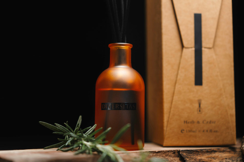 Difusér má matnou, do staro-oranžové laděnou lahvičku a několik černých bambusových tyčinek. Je tedy vhodný jako nenápadná a přitom příjemně vzhlížející dekorace.