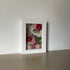 Květinový ručně vyrobený obraz s květy růžových a červených barev, které rostou z rohů obrazu. Mezi květy najdete ostrožku, květy třešní, růži a mnoho dalšího.