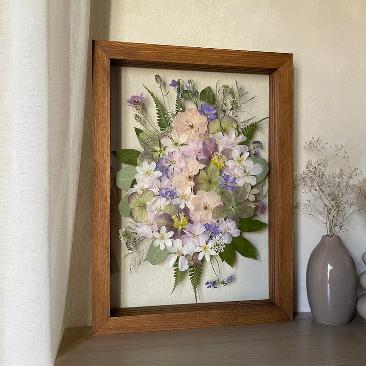 Použité květiny a rostliny jsou skutečné, ručně sbírané a šetrně lisované, aby si zachovaly svou přirozenou strukturu, jemnost i barevnost. 🌿 Následně jsou s citem aranžovány do jedinečné kompozice – každý obraz je originál, žádné dva kusy nejsou stejné.