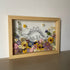 Květinový ručně vyrobený obraz s ručně nakreslenou siluetou zvířátka. Dinosaurus na rozkvetlé louce z pravých květů zahřeje u srdce každého milovníka zvířecí a květinové říše. Pro malé i velké.