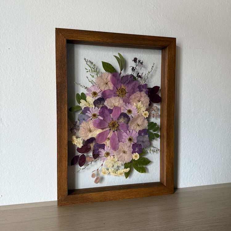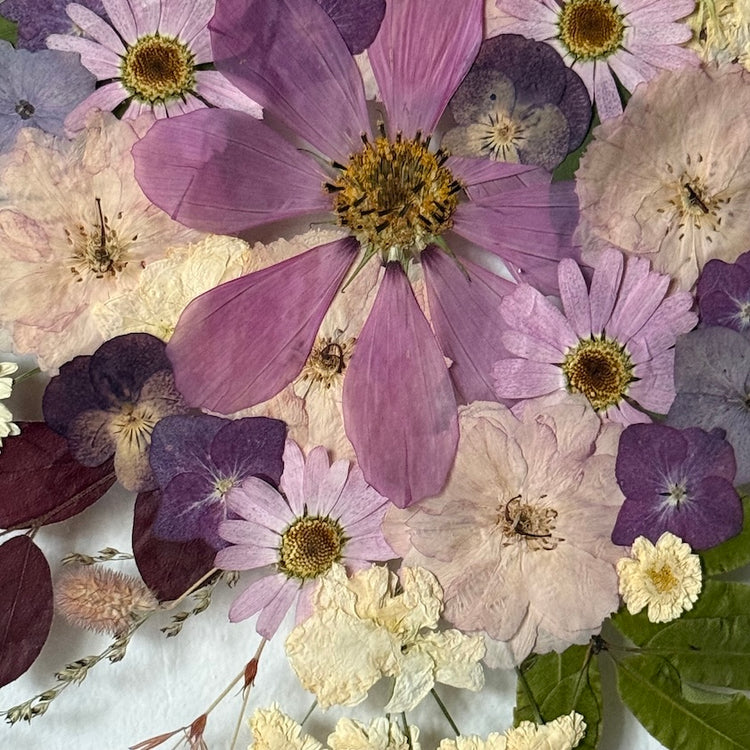 Použité květiny a rostliny jsou skutečné, ručně sbírané a šetrně lisované, aby si zachovaly svou přirozenou strukturu, jemnost i barevnost. 🌿 Následně jsou s citem aranžovány do jedinečné kompozice – každý obraz je originál, žádné dva kusy nejsou stejné.