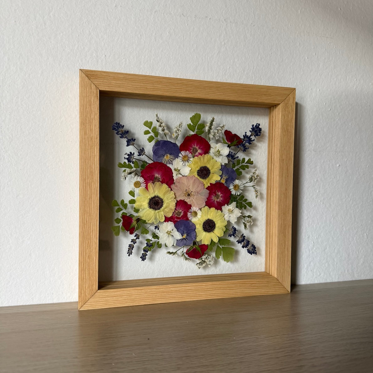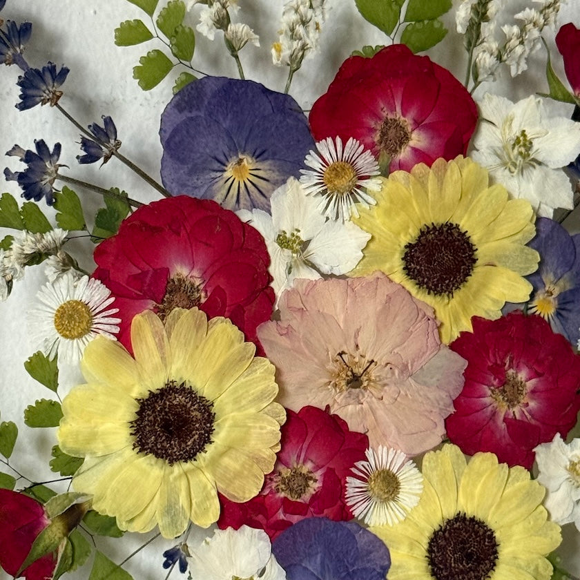 Použité květiny a rostliny jsou skutečné, ručně sbírané a šetrně lisované, aby si zachovaly svou přirozenou strukturu, jemnost i barevnost. 🌿 Následně jsou s citem aranžovány do jedinečné kompozice – každý obraz je originál, žádné dva kusy nejsou stejné.