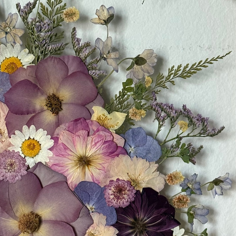Použité květiny a rostliny jsou skutečné, ručně sbírané a šetrně lisované, aby si zachovaly svou přirozenou strukturu, jemnost i barevnost. 🌿 Následně jsou s citem aranžovány do jedinečné kompozice – každý obraz je originál, žádné dva kusy nejsou stejné.
