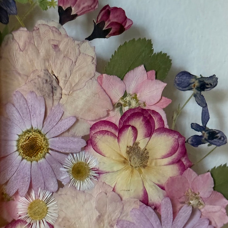Přesně to jsou naše obrazy. Zakládáme si na originalitě a kvalitě, proto je každý náš obraz originál z pravých vylisovaných lokálních květů zarámovaných do ručně dělaných masivních dřevěných rámů.